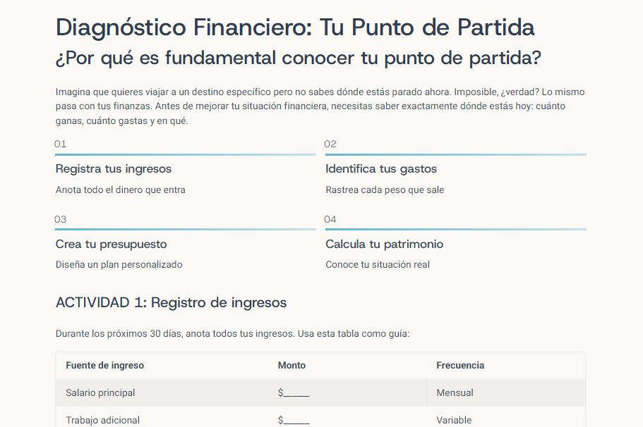 La idea no es que aprendas conceptos financieros… sino que logres ordenar tu dinero de verdad.